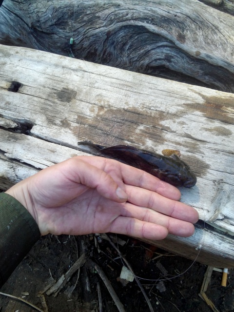 На первом месте начал с силикона , помокав штук 5 разного цвета болт . Перешёл на воблерки и тут же со второго заброса по имел ударчик и вот он нано пиписачный судачишка с ладошку .
