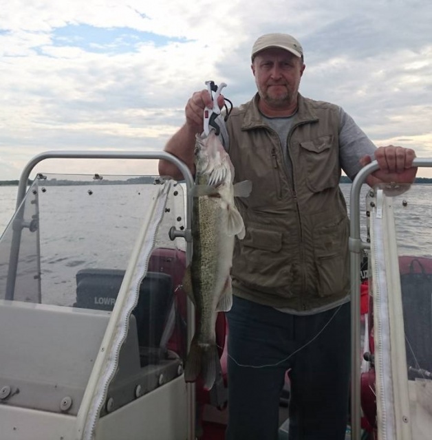 Встал. Делаю тестовый заброс, с целью определить оптимальный вес джиги. И примерно на пятом-шестом обороте чувствую какой-то пинок. Есть! Судак за кило. (Оказался 1.357) Вон оно, что, думаю. И где же я это раньше был? Минут через сорок на меня обратили внимание комары, вполне резонно решившие, что мне наверное скучновато без толку пулять джиги с разным силиконом в бескрайние просторы великой реки. И решили внести в данный процесс некоторое разнообразие. Но я был неплохо к этому подготовлен, и комары обломались по полной программе!