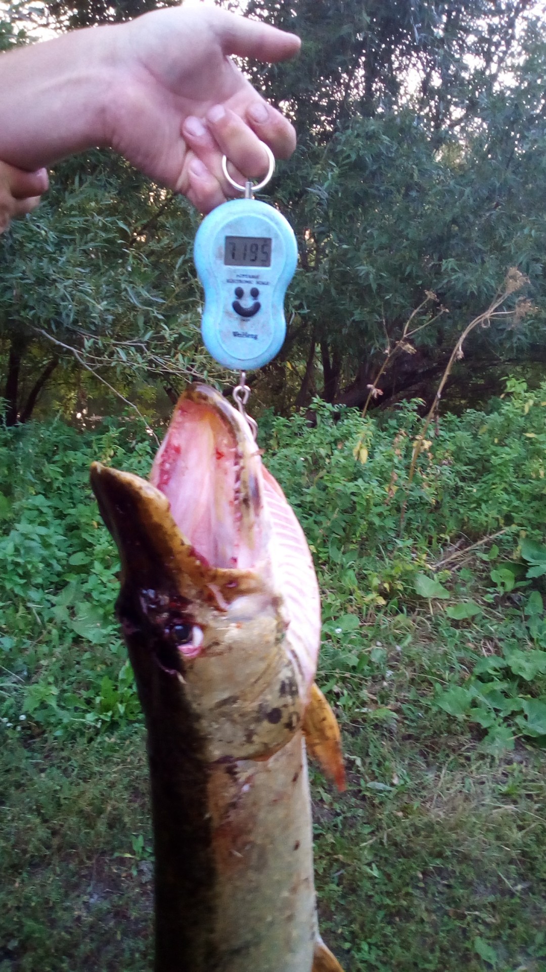 Приветствую всех! Вчера под вечер поехали с Любимой порыбачить на спиннинг, на Иргиз, не далеко от села. Заодно посветил по ямам эхолотом,рыб видел много но поймал так себе. А вот Любимая моя отличилась! И как! На вертушку мепс 3-ка зацепила мамку. На спиннинге у неё стоит обычная леска 0.3 метров 50 катушка 1500 и спиннинг 5-20гр Хорошо что не на якоре стоял! Поплавали за ней мы минут 10-15 я веслами подгребал вдогонку,речка узкая. Еле сдержался чтобы не отобрать у жены спиннинг))) ну Любимая молодец просто,действовала более чем грамотно и хлоднокровно( как будто каждый день таких ловит). Все время вываживания помогал исключительно словом. Ну вот показался этот кракодил на поверхности надо подсаком брать,а она не лезет в него! На 4 том году брал один ,а эта не лезет. После двух попыток стало ясно что подсаком здесь неполучится. Пришлось ушатать ее веслом( оглушить на время резким точным ударом ребром весла по башне) Конечно это грубо и не эстетично как многие скажут,но тут без вариантов было господа. Упустить эту щуку которую моя Любимая так старательно Вываживала просто не мог!) Или я или она!) Короче затащил я ее в лодку и пока плыл до машины она очухалась. Как давай своей пастью махать ,я боялся за свои ноги . На берегу взвесели красавицу потянула на 7.195 кг. Я сам таких ещё не ловил. Любимая в восторге! Вот такая рыбалочка получилась. Всем НХНЧ!!!