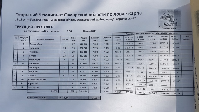 Добавлено: 15 Сентября 2018, 17:26:03 Снялась с турнира команда «Карп Скай» в 21-ом секторе ...