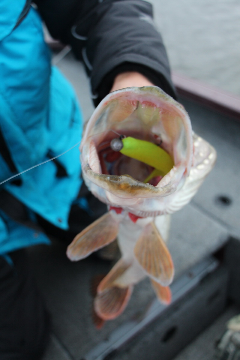 На первых проводках и у меня поклевка и поимка, но рыба не радует размером, хоть и силикон крупный. При этом виброхвост эта щучка чуть более 1 кг скушала полностью.