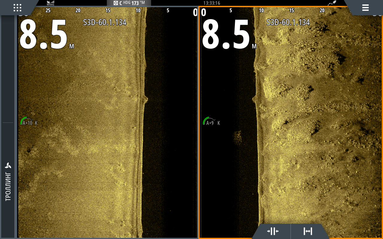 Затонувшее судно с лещем, коряги с подлещиком и камни на Simrad NSS12 evo3 с датчиком Lowrance 3D