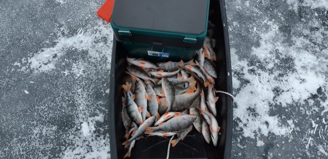 Полосатый клевал редко и единично, немного шелупони и один пузатик, для утра норм, ждем морозов, чтобы пощупать кого то покрупнее.