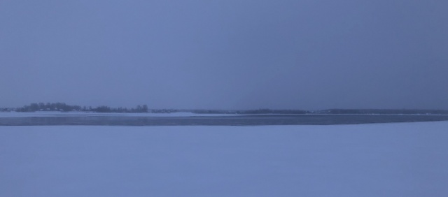 новостями о возможном переходе на Васили, решили рискнуть и отправились c ylitka63 и комплектом жерлиц в воскресенье во Владимировку. Выходить на лед решили с "дач", и по светлому, дабы не искушать судьбу. К нашей радости на предполагаемом маршруте уже стояли вешки, но увы оказались они выставлены не дальше середины, а после ни малейшего следа