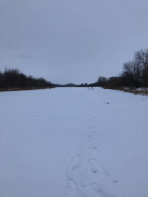 Для выхода на противоположный берег пришлось несколько повилять - лед пока что коварный, непостоянной толщины,