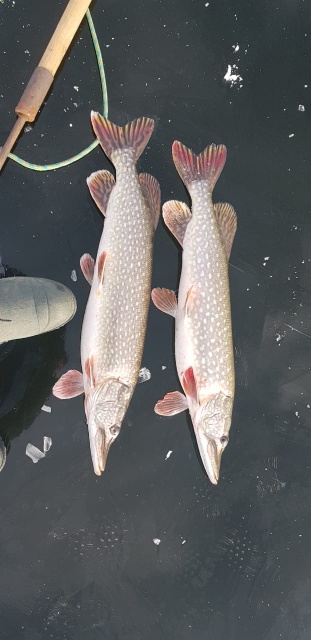 Сегодня, Сосновенький, Курумоч. На жерлицы четыре флага, одна сошла(полкило), одну отпустил(300гр),однп размотала и бросила, и одну килошную поймал. Ну и окуней кила полтора. Окунь мелкий, но иногда проскакивают неплохие. Был срез блесны щукой, переходил на новую лунку, только начал опускать, сразу подо льдом схватила, недолгая борьба и срез. Полкило - семьсот грамм где-то была. У мужиков на безмотылки(скорее всего) нет-нет, сорога проскакивала, с ладонь, нормальная. Был в конце, все поклёвки щуки до метра глубина.