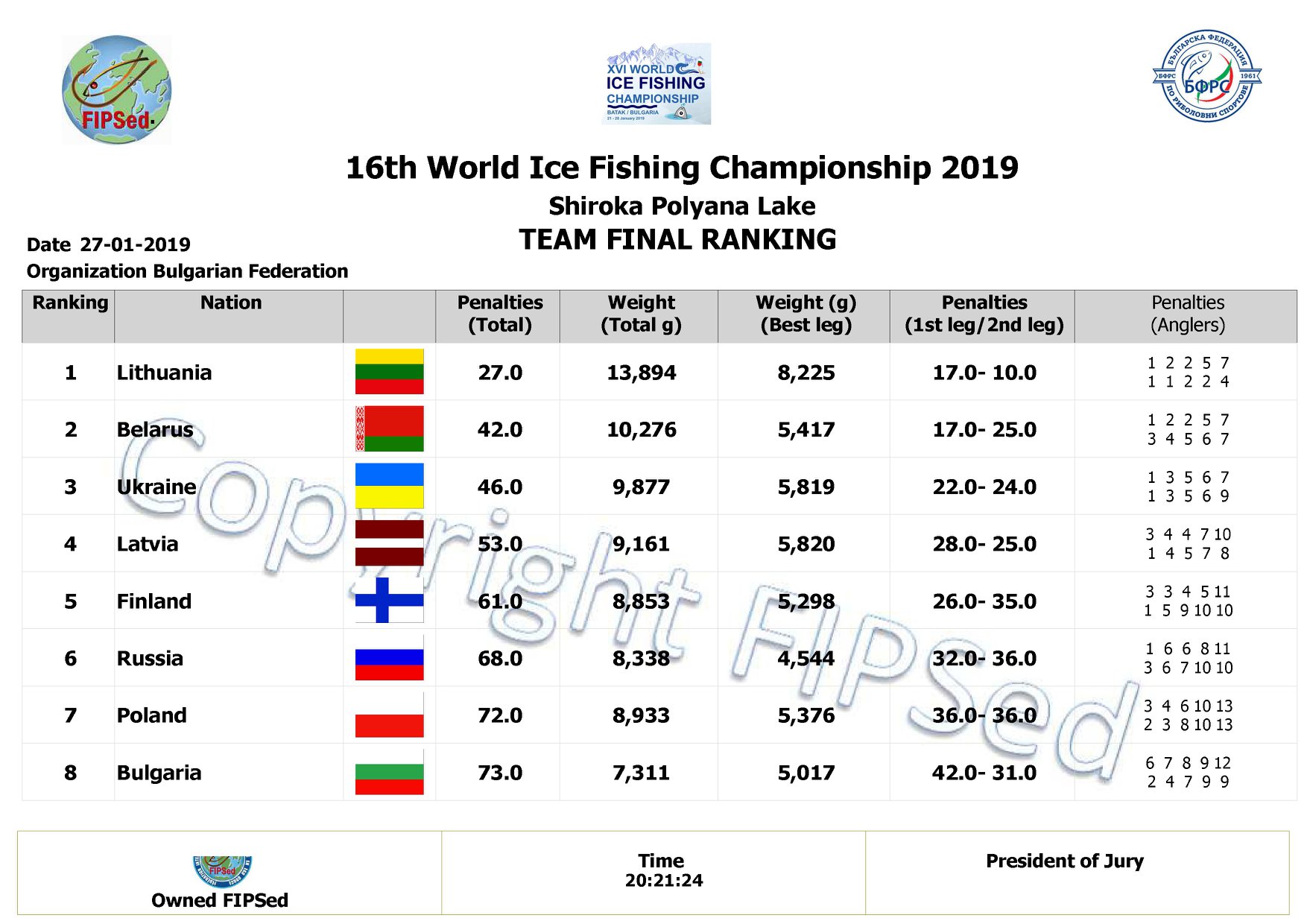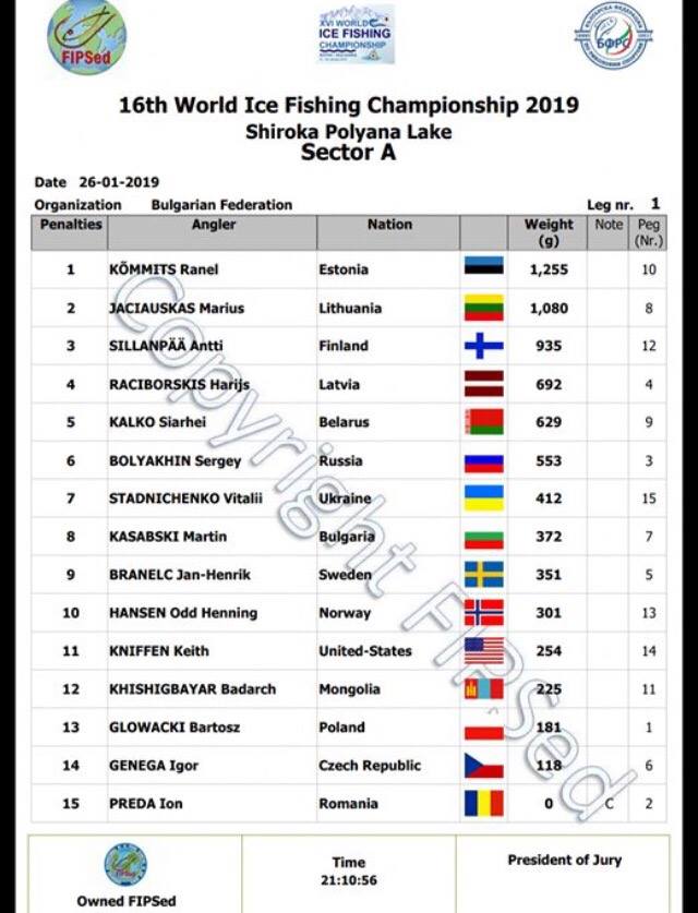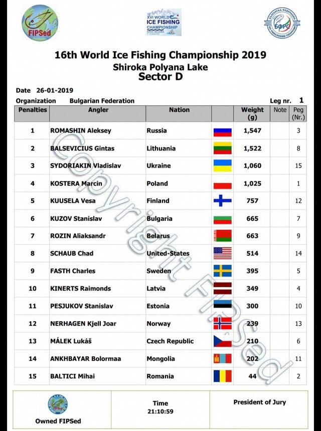 Re: XVI Чемпионат мира по ловле рыбы на мормышку со льда 2019