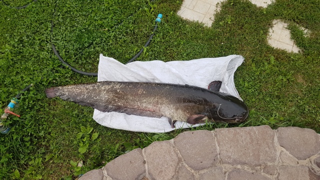 не понимаю, рыба сидела на крючке мощно и надежно, быстро выматываю - и вот он, спонсор слива хорошего жереха: