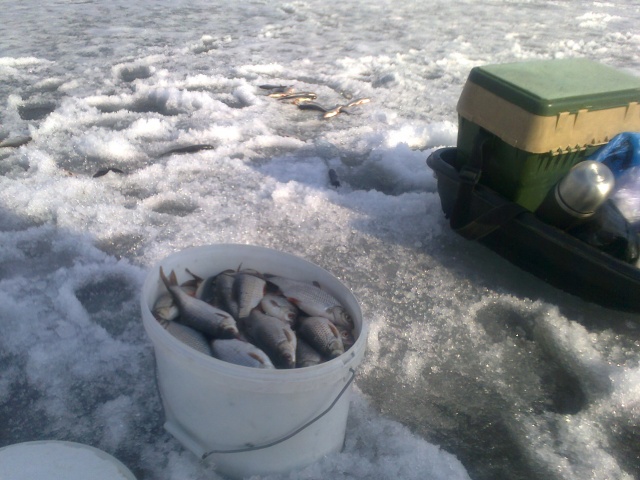 На предыдущих фотках где выход на лёд положили брёвна, так что на месте я был около 8-00, народ уже кучковался, рыбка поклевывала.