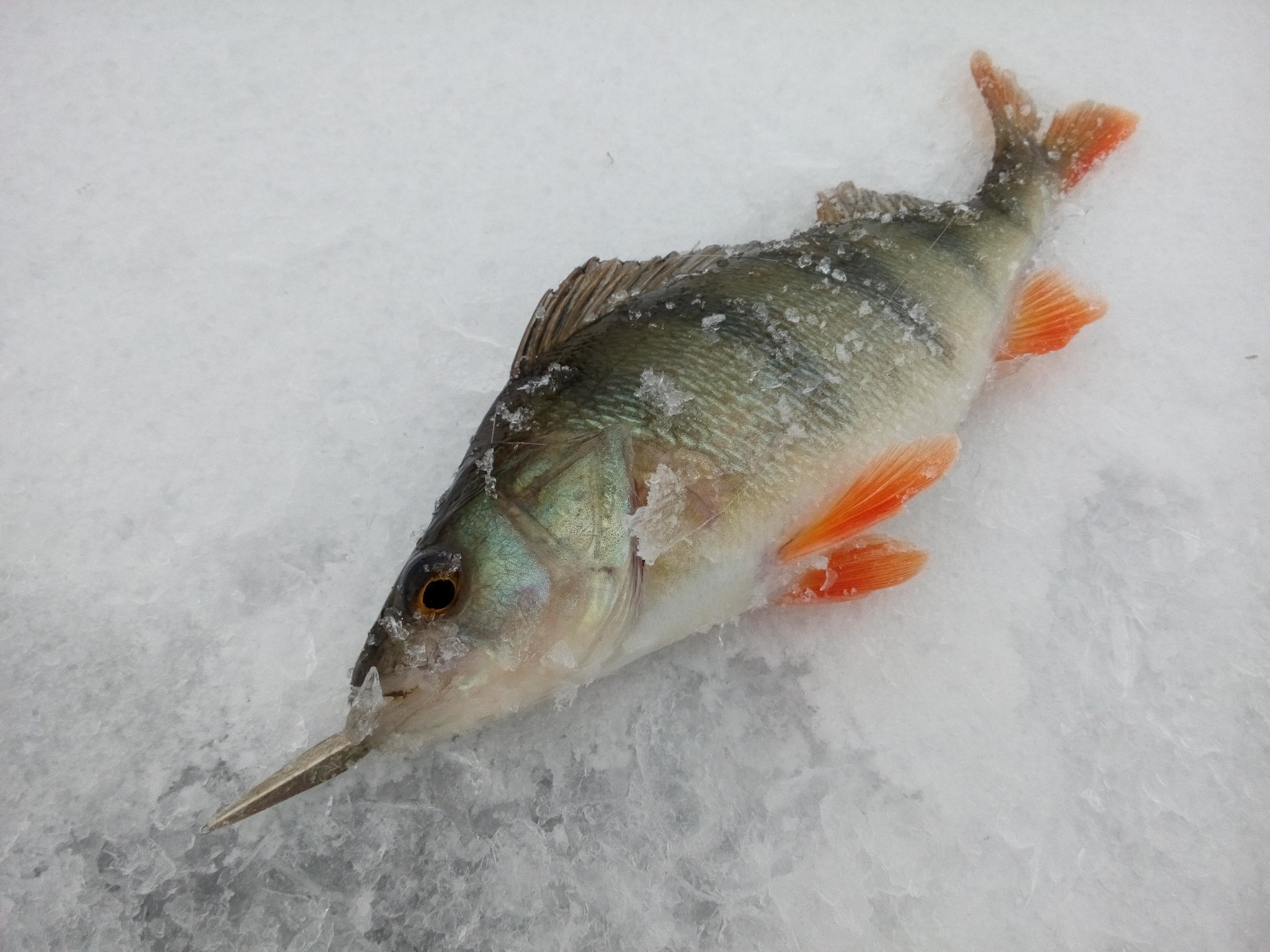 . И вот на одной из лунок случилась она. Я остался без рабочей блесны. Ловить ещё час, прикидываю аналог из того что есть и привязываю торпедку, почти , но всё таки не то же самое. Но худо бедно и на неё случаются поклёвки. Так и ковыляю до финиша.