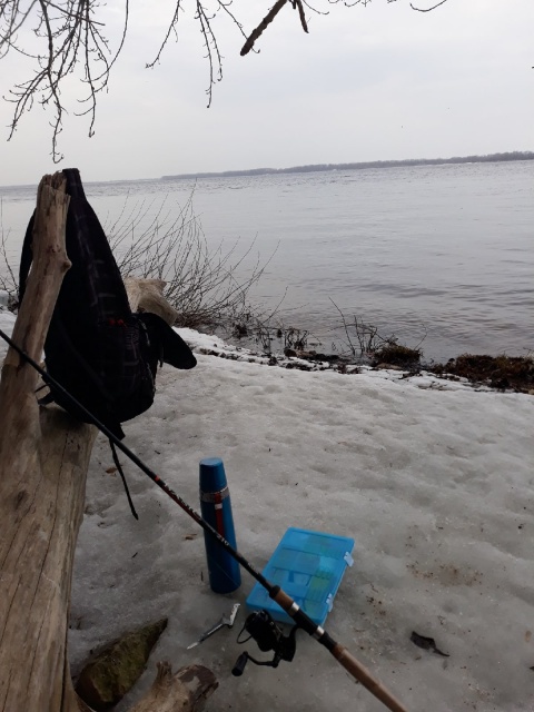 Проснулся пораньше, собрался. Взял все, что могло понадобится: два удилища, воблеры, джиг, микруху, три катушки, термос аж на полтора литра, бутерброды, камеру, зарядные устройства. В итоге получился портфель и сумка. А почему бы и нет, если доехать можно почти до самой воды? А с вечера шел снег…