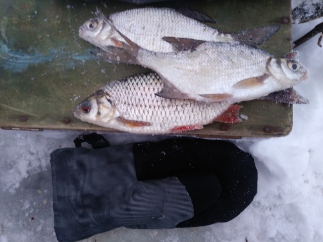 Рассчитывал половить там окуня но, как ни странно, окуня не нашёл, всего попалось штуки 3-4 мелких, остальное - бель. Бегал с рапалой - болт. Бегал с мотылём в коряжных местах - болт! Опять скормили по килограмму каши с напарником и рыб начал клевать потихоньку. Выудили килограмм по пять-семь бели (ни когда не взвешиваю - не интересно), откровенно мелкой было мало и все ушли обратно. Попалось по десятку-полтора достойных (на фото). Течка была на убыль, поэтому клевало сегодня не плохо, опять же оттепель и волшебная каша. Кто-то откусил нижнюю мормыху под самые помидоры - щурка баловалась видно. Опять выловил старую сгнившую сетку с остатками протухшей рыбы. Жерлицы ставить поленились.