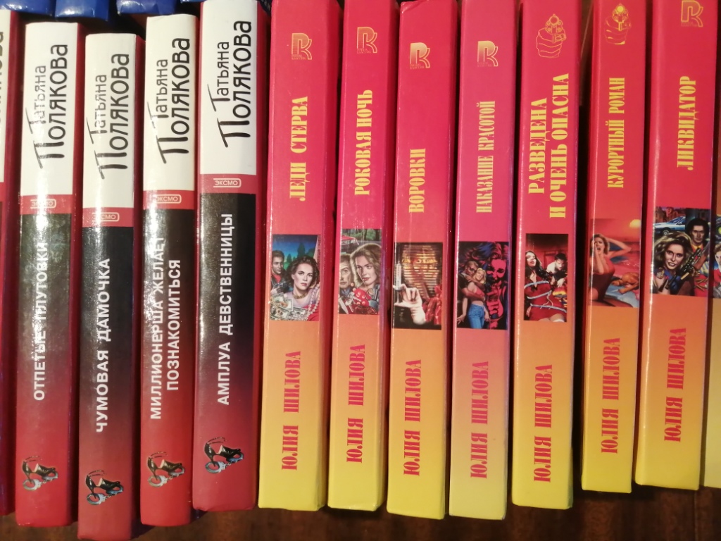 Первая «серия» книг – популярные лет так 15-20 назад «серийные» авторы. Все книги в идеальном состоянии. Большинство прочитаны один раз. (подозреваю, что некоторые даже не открывались… :) ) Очень хочется  отдавать «сериями»…