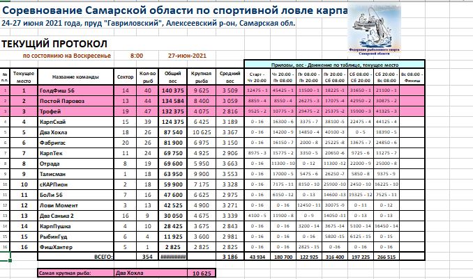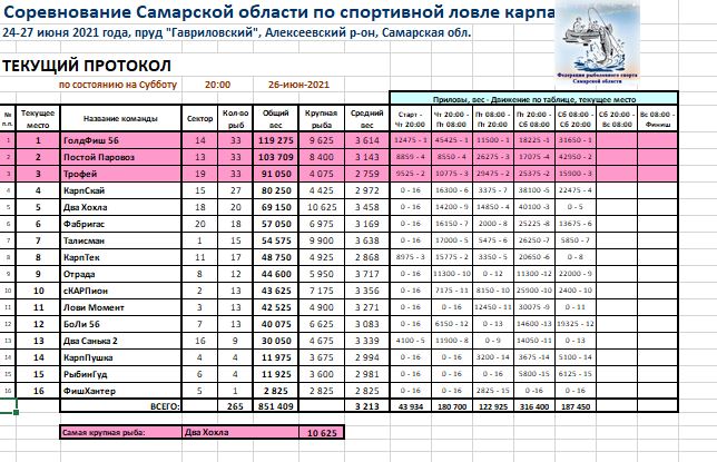 Re: Соревнования Самарской области (ловля карпа-парные) с 24-27 июня