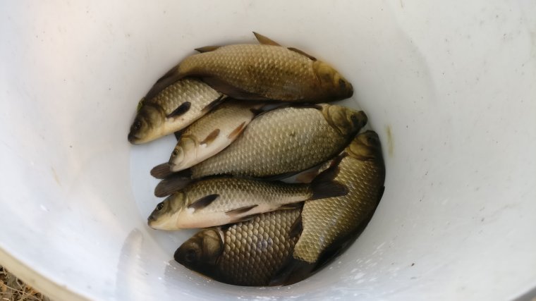 Ну, и порыбачил чутка часок-полтора. Итог десятков пять-шесть карасиков, довез домой в двух емкостях (по 30 литров) живыми.