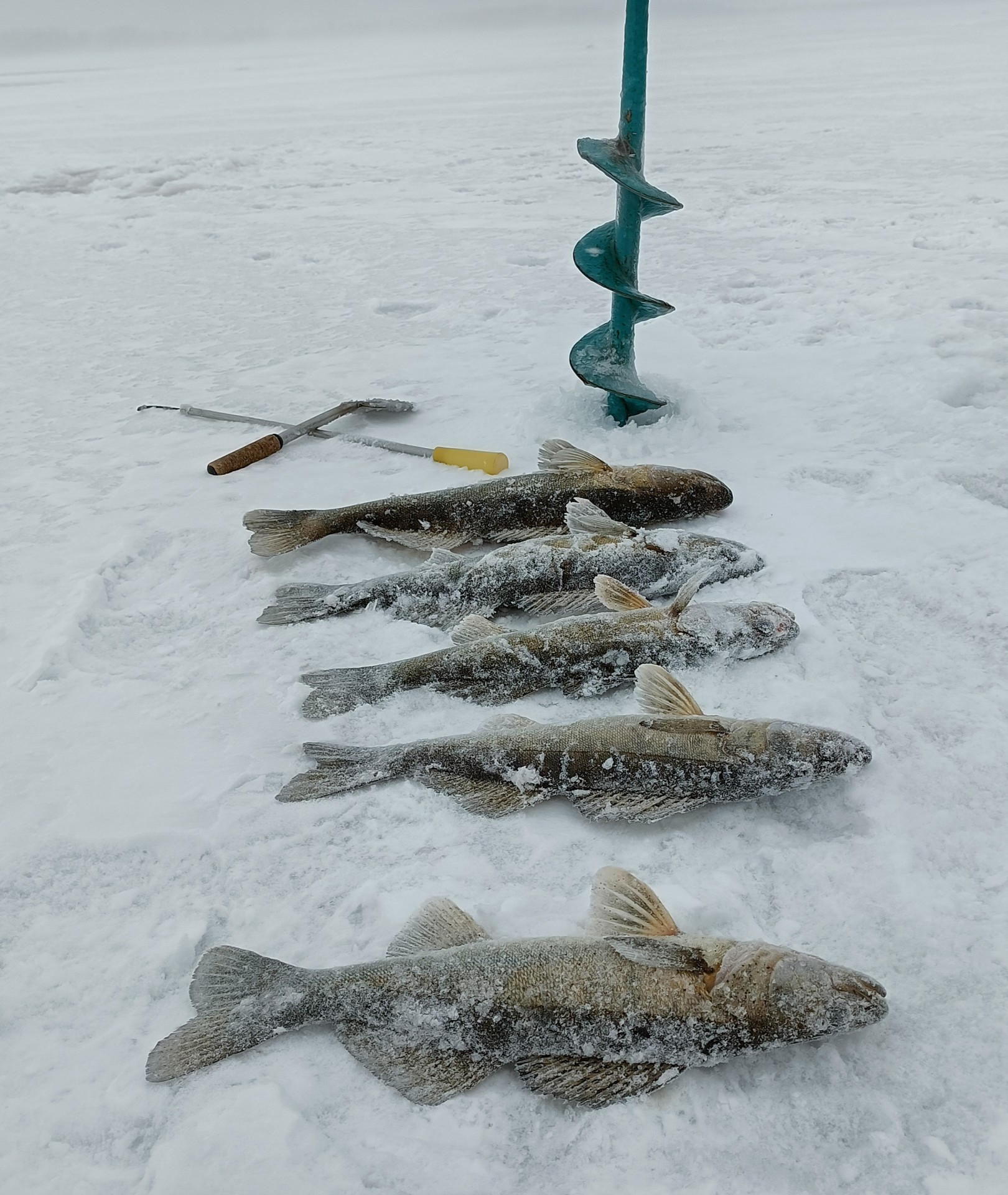Шёл я шёл. Сверлил. По лёд заглядывал. А там Луна. Только без кратеров. Но проходя мимо пары рыбаков, увидел у одного кучку очень приличной густеры. Правда поймана она была явно не только что. Тем не менее это обнадёживало. Есть жизнь подо льдом! Надо её только найти!