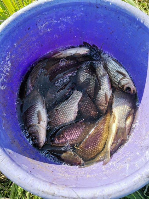 Сегодня половил карасика на одном из прудов Красноармейского района .Как обычно в камыше на мормышку .Итого с семи до 12 часов ведро карасиков ладошечных в том числе один на полкило и десяток до двухсот грамм!Насадка дождевой червяк,собрал после после ночного дождя,Дендробена лучше ,но выползок бесплатно! :#~Прикорм брал на птичке за 200₽ ведро добавил провернутую зелень чеснока.карась дурел от прикорма и насадки! !Всем ни Х ни Ч!