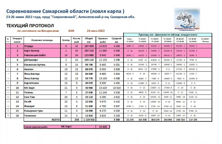 5. Команда "КарпХантер" Балабаев Сергей б/р, Заварзин Алексей б/р