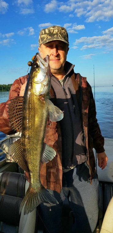 Ловили на 2-х лодках мы с сыном и друзья Леня и Вован (га фото за нами).У Лени эхолот попроще и он рядом с нами ловил.Мы в структурник найдем рыбу и говорим им где ловить.Ну и получилось так,что Вован по нашим наводкам поймал щуку на 3,5-4 кг.