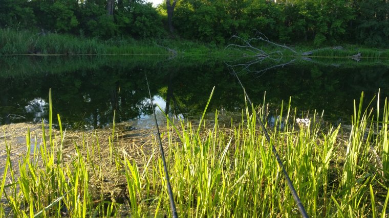 Хуторок. Рыбачил пару часиков вечером. Прикорм на укропе. Подошел карп и оборвал (падлюка) лесу по поплавок