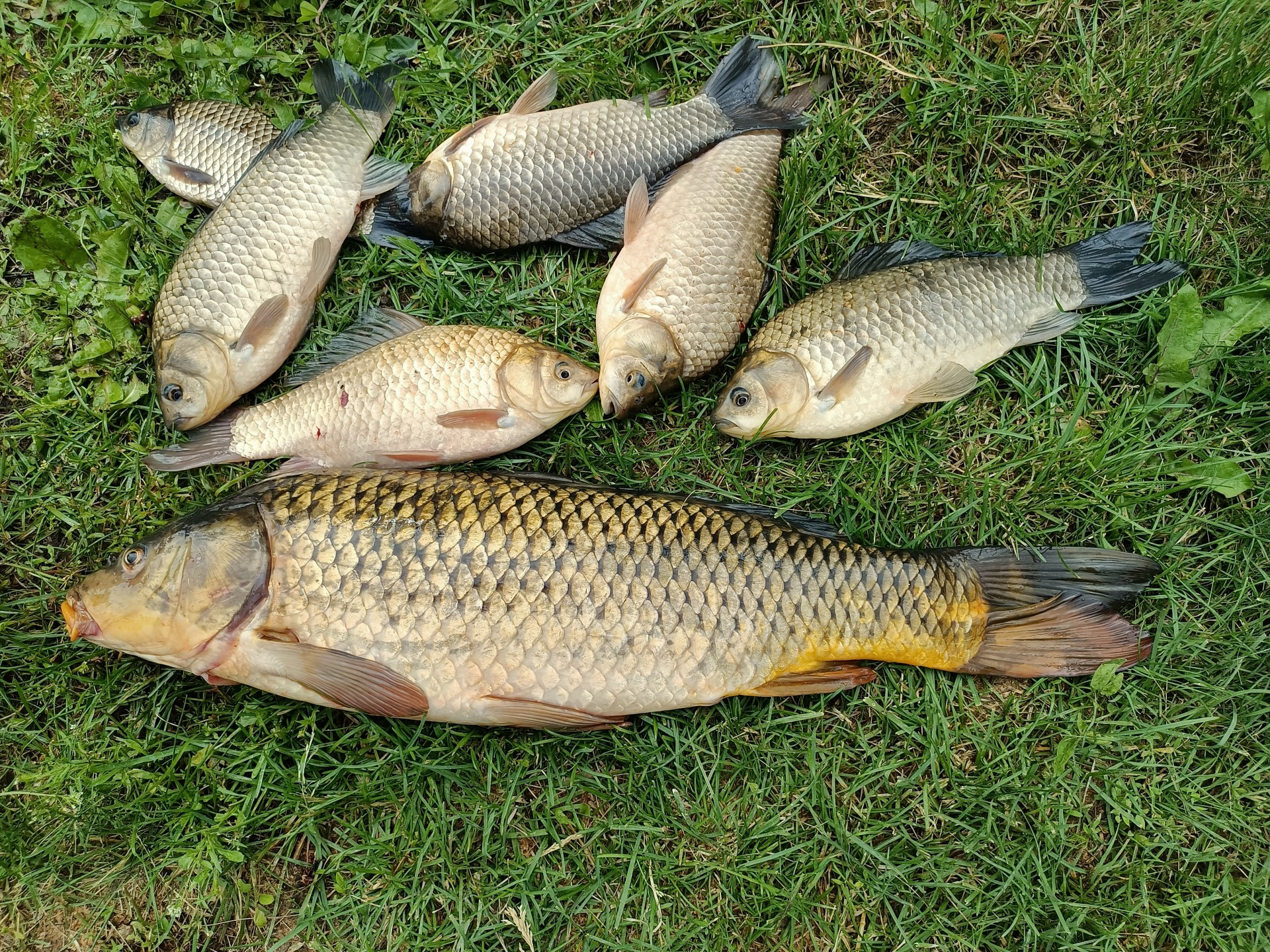 Корешок все также мырчал и терся об бамбук наколдовывая поклевку. Что интересно с руки карасика не берет, только с земли. Пару мелких отпустил, котЭ важно сощурившись великодушно согласился - пусть подрастут...