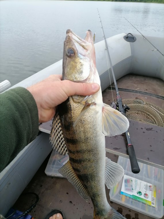 Сегодня утром рыбачили опять по тем же местам. Утром на воде красота,ветра почти нет,пасмурно.Вода ушла,течение умеренное.На первом же месте на первом забросе на 6,5 pal03 ловлю судака примерно килошка.На втором забросе еще один такой же Настроение сразу поднялось.Потом практически эхолотом рыбу не искали.Просто облавливали свои места,где была рыба.Судака крупного не поймали.В одном месте увидели 3 чайки,подошли жереховые всплески.Влад практически сразу же на тейлспиннер поймал жереха.Обновили снасть.До 13 часов ловить было очень комфортно,тепло,пасмурно,солнце не палит.Потом вышли на поляны набрали немного земляники ,потом искупались и домой.Быстрее бы следующая неделя прошла,а то уже охото на рыбалку...