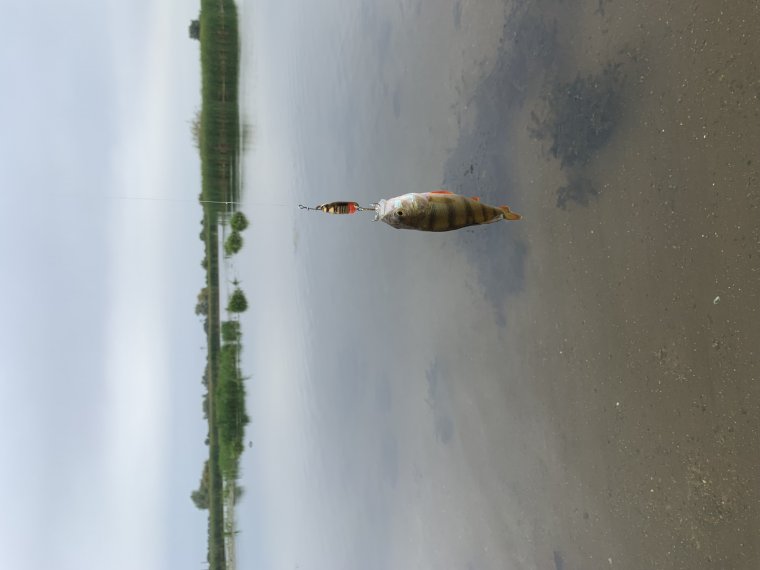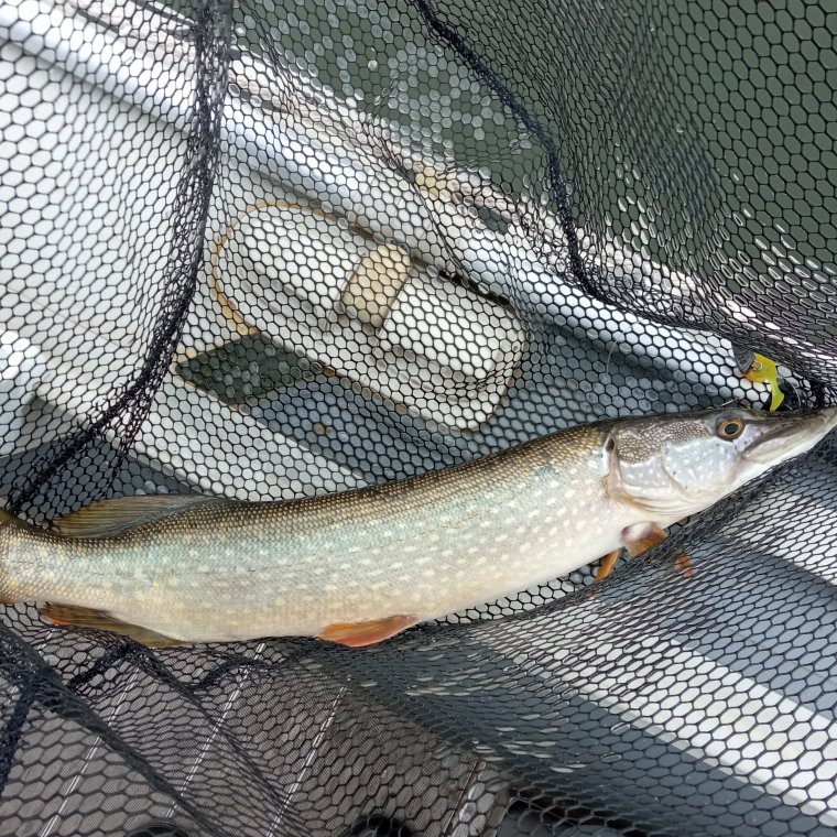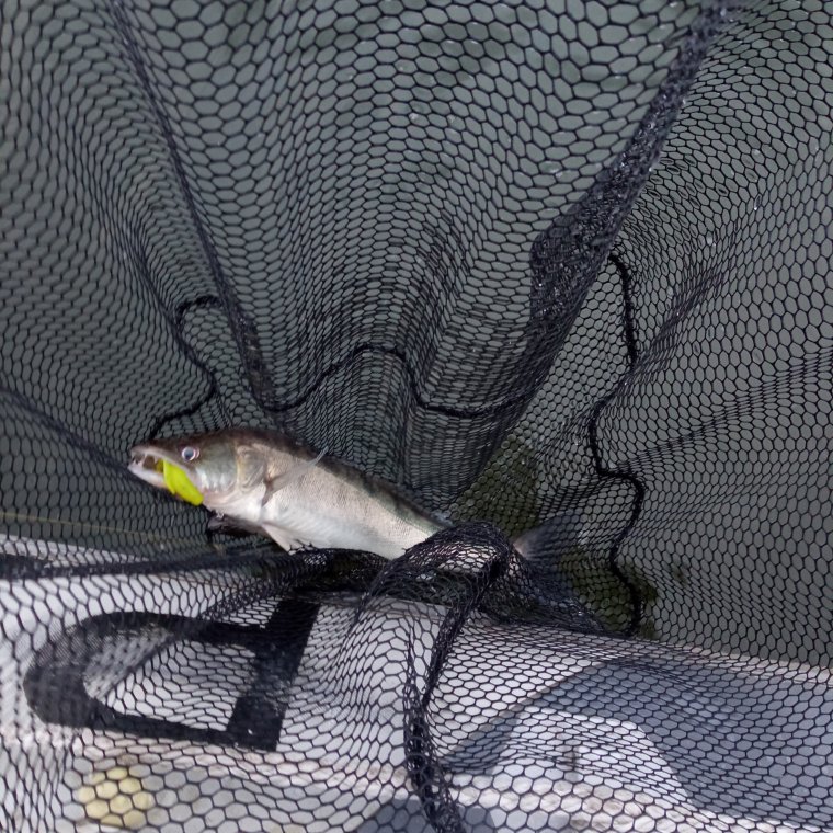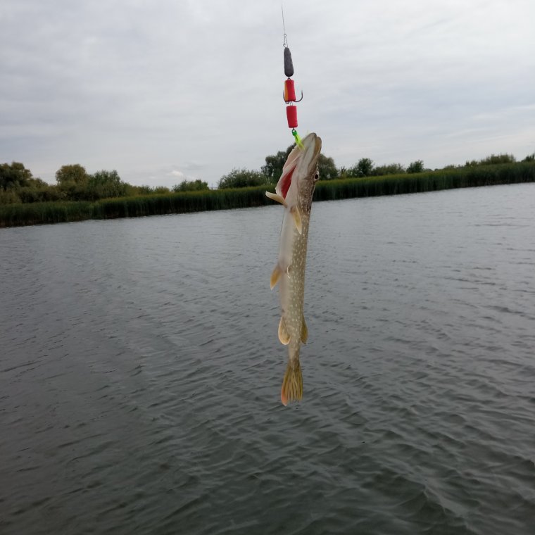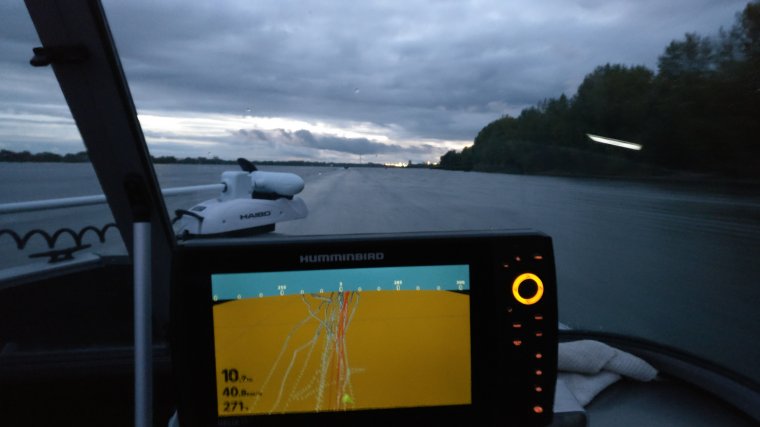 Прошли кучу мест, где-то видно рыбёх, где-то пусто... в три удилки обкидывая, в ожидании чуда... Да ещё и погода поменялась, ветерок задувал. Ещё одного клыкастого килошника достали, поскитались по акватории и помчали домой. У кого дела, кому на работу...