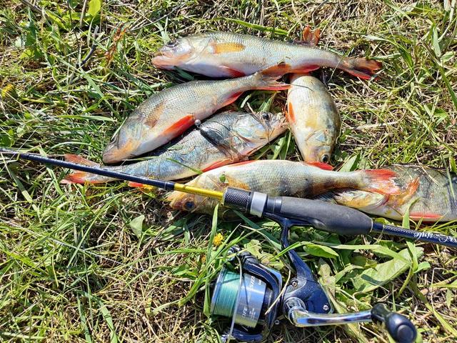 В течение дня мы ездили от точки к точке, и почти на всех ловили окуня, окунь был зачетный по грамм 200-250, как-же его приятно ловить на ультралайтовую палочку. Всю рыбу мы в этот день отпустили, не кто не пострадал, после фотосессии были отпущены.