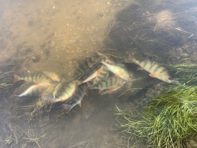 Добрейшего! Сегодня решил проверить окуневую точку на Самарке, из многолетних наблюдений в данном месте, окунь активен именно когда вода реке выше на 1 метр от летних значений. Оставив авто на водокачке и прихватив резиновые сапоги для преодоления 2-х бродов, на точку прибыл около 6 часов, что могу сказать, красота одним словом, никого нет, птички поют, рыбка плещется, собрал инструмент и в бой! Откровенно говоря в этом месте часто рыбачу с самого детства, но такой качественной в плане размера рыбалки по окуню у меня там еще ни разу не было. Поклевки начались сразу и продолжались почти на каждом забросе, все поклевки уверенные с ударом в руку, спиннинг в дугу, приятный треск фрикциона, рывки при вываживании... короче говоря море адреналина и положительных эмоций. Мелочь с ладошку проскальзывала очень редко и сразу отправлялась в родную стезю, в основном мордатый весь мерный 300-600 гр., к 8:30 ветерок усилился и работать нано-джиговым инструментом стало относительно не комфортно, да и кукан уже был почти под завязку полный и я собрался и неспеша двинулся в сторону машины. Утро пролетело не заметно. Ловил спиннингом тестом до 3 гр, джиг-головка 1,35 гр, силиконовый рак 1,6 см, шнур PE 0,2.