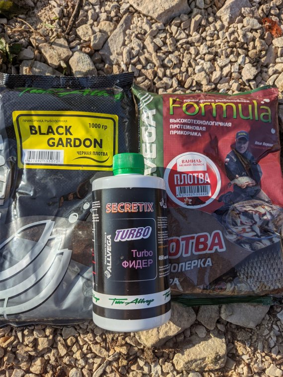 Сегодня, Копылово. Прикорм Team Allvega Black Gardon и Formula Allvega плотва ваниль. Замешал на жидком ароматизаторе Allvega Secretix Turbo Feeder.