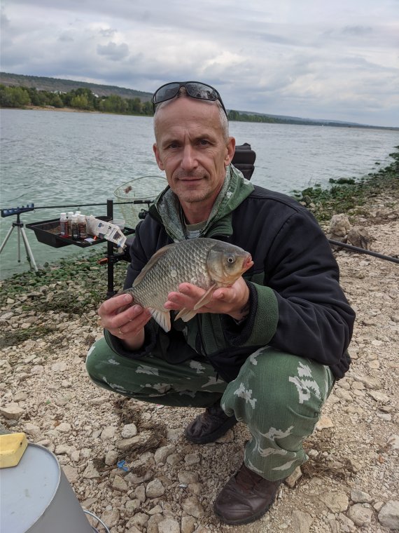 По промеру нашёл две дистанции. Одна 76 метров, небольшой стол перед бровкой и вторая 43 метра, переход с ила на камень. Стартовый закорм делать не стал, присутствовало сильное течение. Поэтому сразу начал забросы с поводком. Наживка опарыш. Периодически диповал насадку ароматизаторами концентратами Allvega Essence. Хорошо работала сладкая кукуруза и клубника. Червь как-то не особо пользовался у рыбы успехом. Много мелочи было сразу отпущено в родную стихию. Рыбка присутствовала на точке практически постоянно, за исключением моментов когда течка дула как не в себя. Рыбалкой в целом остался доволен. Воздухом подышал, рыбку поймал.