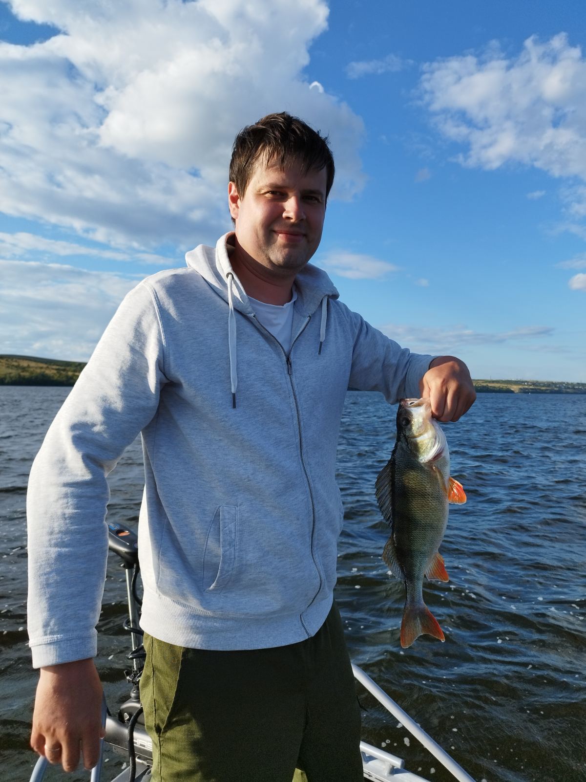 Утром мы решили посмотреть где неделю назад несколько лодок че то долго ловили.Но там оказалась рыба некрупная,не стайная,разбросанная по дну.Влад там на поронку поймал берша.