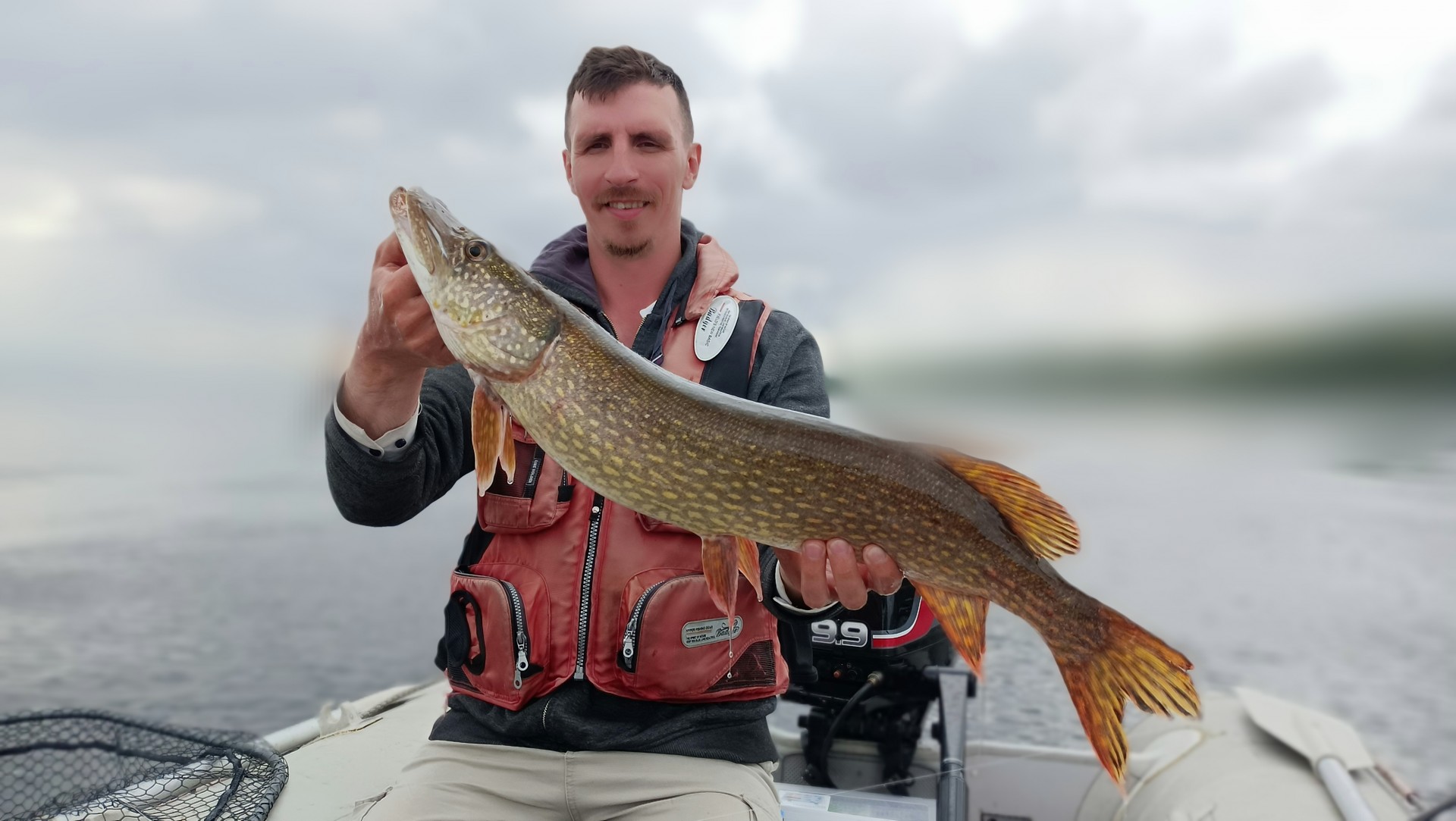 Ну и примерно в обед Влад поймал на #Frapp фанкишад 6,9 щуку примерно 4,5-5 кг.