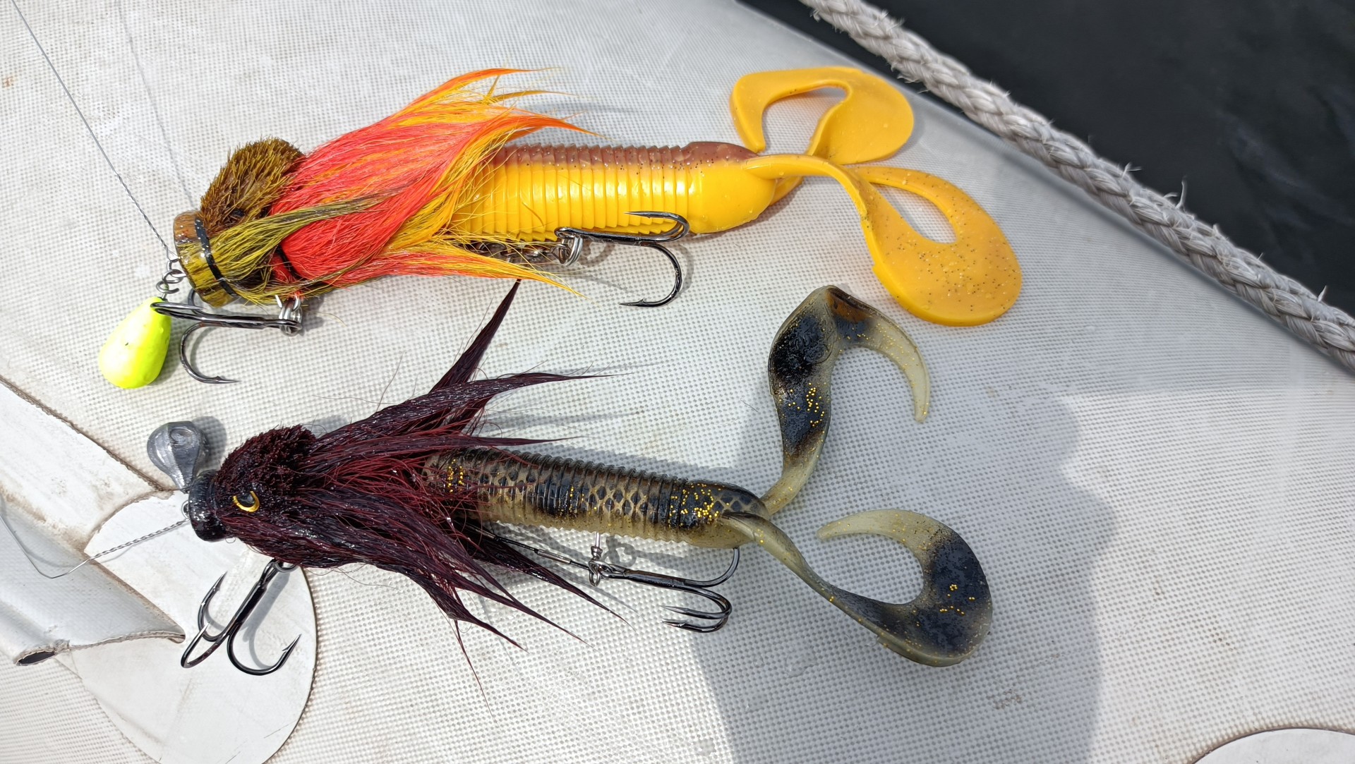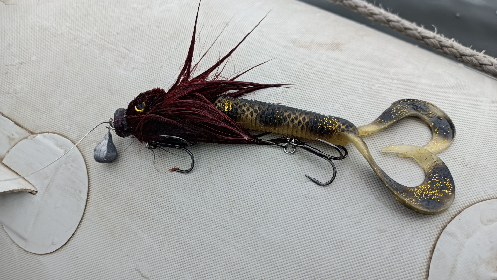 Потом на мышек поклевок не было,а у Влада одна щука,примерно двушка сначала насадила хвост FAT 6,8 на крючок джигголовки,но на следующей проводке Влад доловил ее.