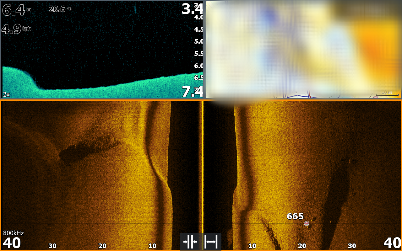 Ну а потом пошли искать щуку..Рыбу нашли быстро,но поймать сразу не получилось.Пришлось поднапрячься.Первая щука клюнула у Влада на яркую крупную мышь,но сошла.Потом увидели в эхолот хорошую парочку рыб