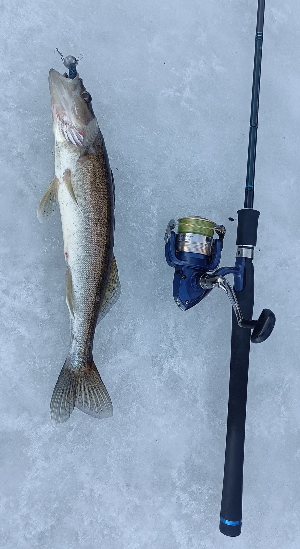 Утро прекрасное, полный штиль, не по мартовски тепло. Мешает только огромное количество плывущих льдин. Выбирал более менее свободный прогал и шел за ним кидая джигу. Было две поклевки. Первый сорвался, а второй попался. Да маленький, но он ПЕРВЫЙ. Короче сезон открыл, чего и вам желаю. Удачи. Пока пока.