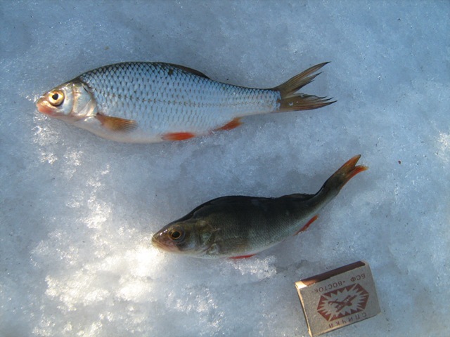 Сегодня с Вованом410 были в Купринке. Первый раз там. Заход на лёд хреноватый, но лёд толстый, хотя местами можно купнуться. С утра сели, на козу с опарышем поклёвка, потом сход. И тишина. Прикормил, пробурил рядом вторую, сел на сорожку. Поклёвывало так себе, то тишина вообще, то на обе удочки.Сорожняк с ладонь. Не крупный, но и не совсем мелкий. Периодически окушки средние попадались, и мега-ерши. Вован бычка с ладонь поймал. Погодка супер, рожа красная. В общем водоём мне понравился, для первого-последнего льда - супер. На следующие выхи мож мотанусь туда с поплавочкой по открытой воде, вода есть. Кила три в общей сложности натягал.