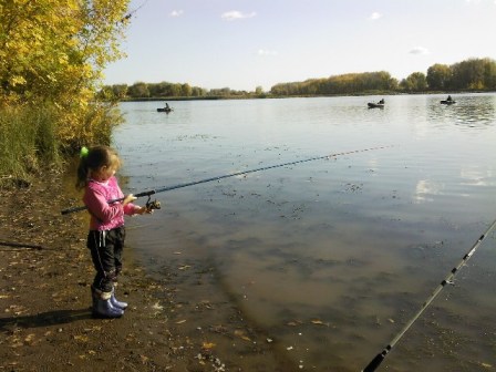 На днях мелкому карасику исполнилось пол года, седня вместо прогулки поехали к Южному мосту на сухую самарку, на фидер фанерок половить, пора приучать к рыбному делу)))