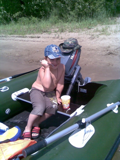 Этим летом племянника первый раз свозили на спиннинговую рыбалку. Хоть рыбы и не было, но зато эмоций куча! Спиннинг через 5 минут забрасывать научился! Всё попробовал и грести и лодку качать