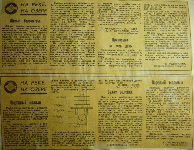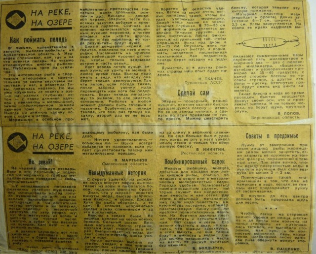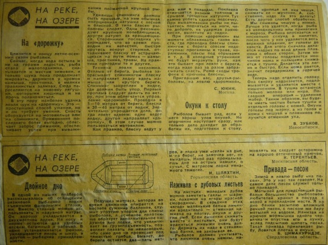Действительно каждый четверг или среду в Сельской Жизни выходила рубрика На реке На озере. И я такие вырезки клеил в тетрадку. Иногда достаю, детство вспоминаю. Тоже могу что-то выложить.