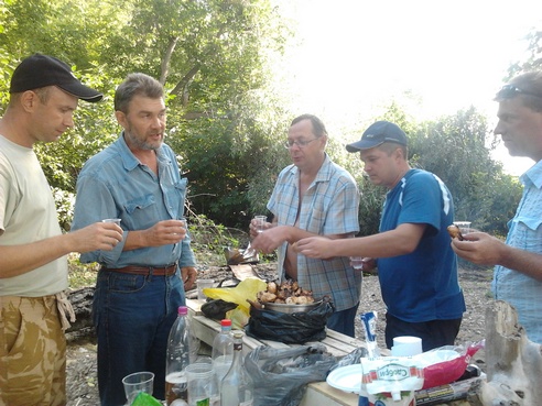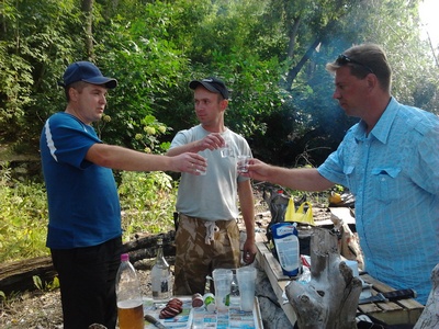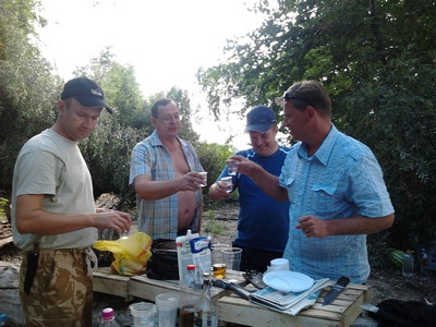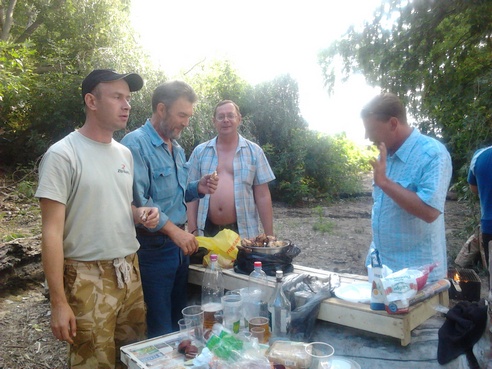 был на "Сие" мероприятии +\- час,(т.к. со скребущемися кошками на душе уехал за благоверной на работу ) сделал несколько фото на мобильник с первыми тостами "ЗА" - все хорошее и наилучшее ... и многообещающим, очень веселой и дружелюбной компанией, А САМОЕ главное только только подтягивающимися форумчанами на запах жаренного мяса и не гаснущих углей, вечером я должен был вернуться и продолжать всех звенеть "пластиковыми" стаканами и дискутировать на тему рыбной ловли вместе со всеми...приношу свои извинения, не смог вернуться, т.к. сегодня сестренка подали в загс заявление и на ЭТО я не смог придумать отмазки, пришлось пить чай, что забыл телефон с фотками у нее фото будет завтра, точнее утром)))