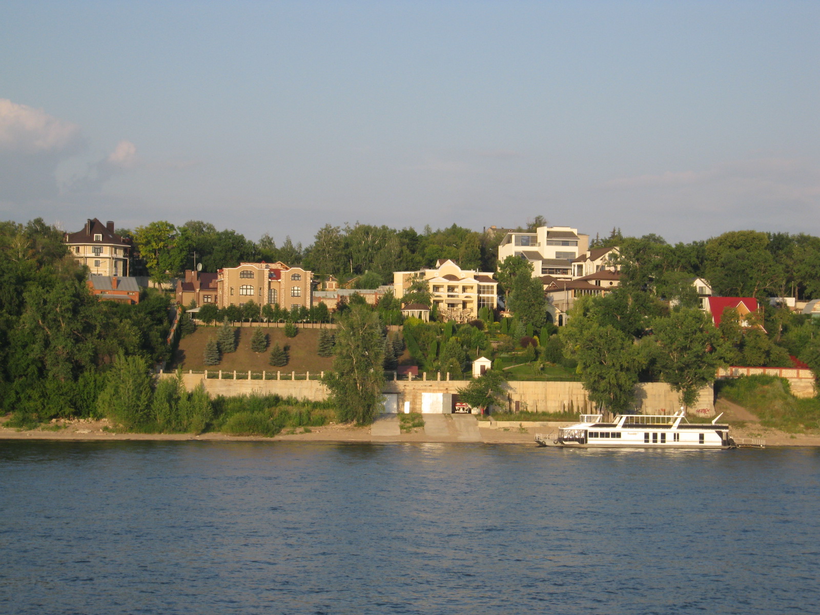 одна точка по продаже пива и лещей, выловленных браконьерами (донных сетей поблизости немеряно, трясут никого не боясь) лоток с сувенирами, экскурсия по городку, местный пляж с щебеночноглинистоилистым дном и водой цвета этого же дна, кран выгружающий щебень сначала в воду а затем в самосвалы, лестница от берега до городка… отважившиеся подняться по ней чуть было не отстали от теплохода.